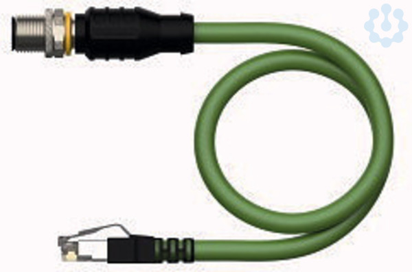 Leitung für Industrial Ethernet, Verbindungsleitung, Leitungslänge 60 m, M12-Stecker, gerade, D-codiert, RJ45?Steckverbinder, Ethernet?Leitung: 4?polig, AWG 22, CAT 5E, Mantelmaterial: PUR, Mantelfarbe: grün, Schirm: Aluminiumfolie überlappend, Kupferdraht verzinnt, Manteldurchmesser: 6.5 mm, schleppkettentauglich, ölbeständig nach IEC 60811-2-1 und UL13, halogenfrei nach IEC 60754, flammwidrig nach IEC 60332-1-2 und UL FT2, RoHS-konform, PNO-konform, Leitungslänge: 60 Meter