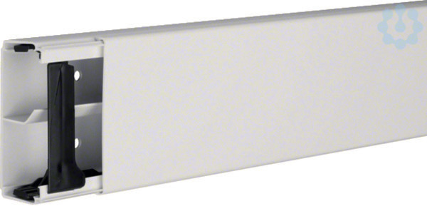 Leitungsführungskanal mit Trennwand PVC LF 40x90mm verkehrsweiß. Elektro-Installationskanal-System Leitungsführungskanal aus Kunststoff nach DIN EN 50085-1 zur Leitungsverlegung. Kanalunterteil/-oberteil mit fester Trennwand, mit vorgestanzter Bodenlochung im Abstand von 125 mm, ab Größe 40 x 60 mm mit vormontierten Kupplungen zur einfachen Ausrichtung bei Ein-Mann-Montage und vormontierte anstellbaren Rückhalteklammern. Hinweis: Schall- und Brandschutz-Maßnahmen sind fachgerecht auszuführen.
