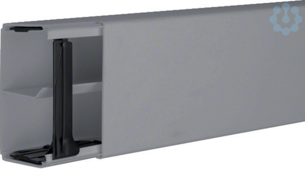 Leitungsführungskanal mit Trennwand PVC LF 60x110mm steingrau. Elektro-Installationskanal-System Leitungsführungskanal aus Kunststoff nach DIN EN 50085-1 zur Leitungsverlegung. Kanalunterteil/-oberteil mit fester Trennwand, mit vorgestanzter Bodenlochung im Abstand von 125 mm, ab Größe 40 x 60 mm mit vormontierten Kupplungen zur einfachen Ausrichtung bei Ein-Mann-Montage und vormontierte anstellbaren Rückhalteklammern. Hinweis: Schall- und Brandschutz-Maßnahmen sind fachgerecht auszuführen.