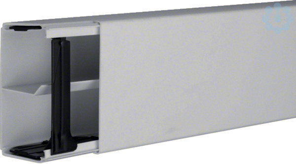 Leitungsführungskanal mit Trennwand PVC LF 60x110mm lichtgrau. Elektro-Installationskanal-System Leitungsführungskanal aus Kunststoff nach DIN EN 50085-1 zur Leitungsverlegung. Kanalunterteil/-oberteil mit fester Trennwand, mit vorgestanzter Bodenlochung im Abstand von 125 mm, ab Größe 40 x 60 mm mit vormontierten Kupplungen zur einfachen Ausrichtung bei Ein-Mann-Montage und vormontierte anstellbaren Rückhalteklammern. Hinweis: Schall- und Brandschutz-Maßnahmen sind fachgerecht auszuführen.