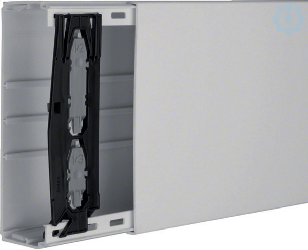 Leitungsführungskanal aus PVC LF 60x190mm lichtgrau. Elektro-Installationskanal-System Leitungsführungskanal aus Kunststoff nach DIN EN 50085-1 zur Leitungsverlegung. Kanalunterteil/-oberteil mit Trennwand-Einbaumöglichkeit, einrastbar, mit vorgestanzter Bodenlochung im Abstand von 125 mm, mit vormontierten Kupplungen zur einfachen Ausrichtung bei Ein-Mann-Montage und vormontierte anstellbaren Rückhalteklammern. Hinweis: Schall- und Brandschutz-Maßnahmen sind fachgerecht auszuführen.