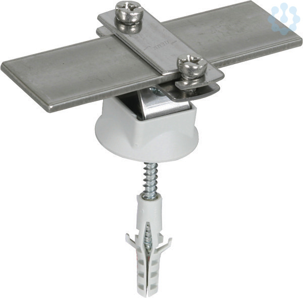 Flachbandhalter DEHNhold mit geschlitztem Überleger, zum Befestigen von Flachleitern. Einsetzbar für verschiedene Werkstoffe z. B. Al, NIRO, St/tZn und Cu, feste Leitungsführung. Ausführung vormontiert mit Schraube, Kunststoffsockel und Dübel.