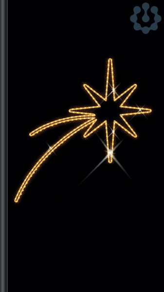 Lichtschlauchmotiv Comet Wega, 110x115cm, 25W, warmweiß, P-I-Z. 100 Prozent recyclebar, wasser- sowie wetterfest und UV-Licht beständig. Dazu kommt die Teilintegration des Rahmens in das Motiv, was die Handhabung erleichtert und das Design bereichtert, und zwar durch den Tages- und Nachteffekt. Wie das funktioniert? Durch die besondere Materialzusammensetzung entsteht eine sehr reizvolle Oberfläche, die bereits tagsüber bezaubernd schimmert. Nachts werden Engel und Co. durch komplementäre Leuchtmittel aus dem Inneren mächenhaft inszeniert. Energieeffizienzklasse: nicht kennzeichnungspflichtig