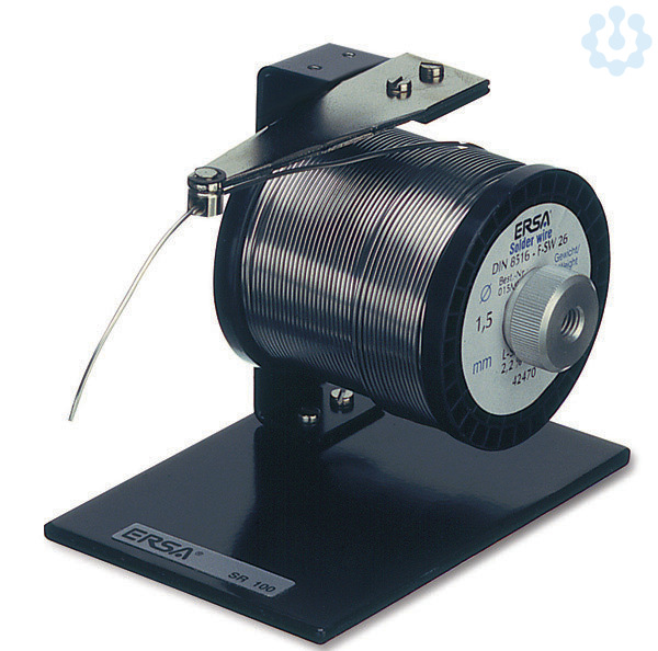 Der ERSA Lötdrahtabroller ist die optimale Ergänzung für den Lötarbeitsplatz. Er besitzt durch die schwere Bodenplatte eine ausgezeichnete Standfestigkeit. Der SR 100 wurde so konzipiert, daß verschiedene Lötdrahtspulen (250/500/1000 g) verwendet werden können. Eine konische Zentriermutter garantiert das optimale Abrollen unterschiedlicher Spulen. Die flexibel gelagerte Lötdrahtführung ist für verschiedene Lötdraht-Durchmesser geeignet und ermöglicht schnell die Lötdrahtzufuhr in die gewünschte Position, ohne daß der Standort des ERSA SR 100 geändert werden muß. Zum Verwenden einer zweiten Lötdrahtspule lässt sich problemlos der optionale Aufbausatz ERSA 0SR101 montieren.