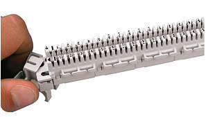 Anschlussmodul mit LSA-Kontakten (45°-Schrägstellung) zum Verbinden kunststoffisolierter Kupferleiter mit massiven oder verseilten Kupferadern (Litze) für Schneidklemmverbindungen nach IEC 60352-4 und DIN 41 611-6-C-EL-CL. Geeignet für Montagewannen/-kanäle.