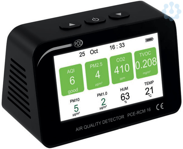 Der Luftqualität-Detektor ist ideal zur Überwachung der Luftqualität in Wohnhäusern, Firmen oder öffentlichen Gebäuden, in denen sich Personen aufhalten. Das 4,3 Zoll große TFT Display bei dem Luftqualität-Detektor ist so dimensioniert, dass sämtliche Messwerte direkt abzulesen sind. Unterstützte Messungen bei dem Luftqualität-Detektor sind CO2, TVOC, PM1, PM2,5, PM10, Temperatur und die Umgebungsfeuchtigkeit. Auf dem Display des Luftqualität-Detektors werden die Messwerte sekündlich aktualisiert. Sobald ein Messwert den festeingestellten Grenzwert überschreitet, wird dies visuell für den Benutzer kenntlich gezeigt. Zur Spannungsversorgung kann der Luftqualität-Detektor direkt über den Mikro USB Anschluss auf der Rückseite betrieben werden. Auch der verbaute Akku beim Luftqualität-Detektor wird über diese Schnittstelle aufgeladen. Somit ist der Luftqualität-Detektor vielseitig einsetzbar. Hierbei ist zu beachten, das die Messwerte sich nach einschalten des Luftqualität-Detektors innerhalb von 24 Stunden einp