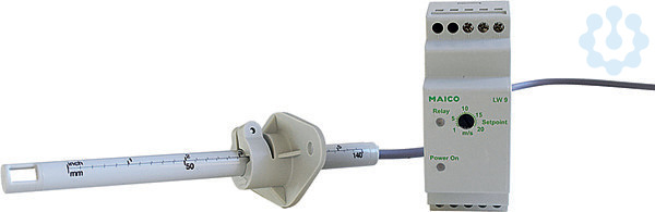 Luftstromwächter zur Überwachung eines Mindestvolumenstromes in Lüftungsanlagen. Länge des Fühlerkabels: 2,5 m. Wird die Fühlerleitung in Kabelkanälen verlegt, müssen abgeschirmte Leitungen verwendet werden. Der Fühler erfasst den Luftstrom und vergleicht ihn mit dem eingestellten Sollwert des Steuergerätes. Steuergerät: Einbau auf 35 mm Profilschiene. Mit LED-Funktionsanzeige von Relaisausgang und Nennspannung. Wahlschalter für Arbeits- und Ruhestromfunktion. Mit potenzialfreiem Ausgang über Wechsler, z.B. für Betriebs- oder Störmeldungen.Artikel: LW 9, Min. Strömungsgeschwindigkeit: 1 m/s, Max. Strömungsgeschwindigkeit: 20 m/s, Bemessungsspannung: 230 V, Netzfrequenz: 50 Hz / 60 Hz, Maximalbelastung (induktive Last): 2 A, Maximalbelastung (ohmsche Last): 5 A, Schutzart: IP 10, Einbauort: Kanal, Gewicht: 0,3 kg, Breite: 35 mm, Höhe: 90 mm, Tiefe: 65 mm, Fördermitteltemperatur bei Nennstrom: -20 °C bis 80 °C, Umgebungstemperatur: 60 °C, Geeignet für Boxlüfter: ja, Geeignet für Dachlüfter: ja, Geeignet für Roh