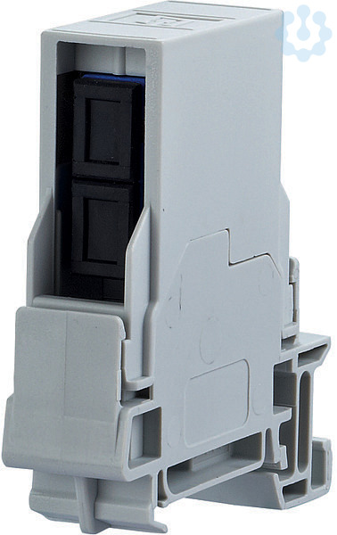 Anschlusseinheit mit SC-D Kupplung auf Tragschiene TH35 nach DIN EN 60715, Führungshülse aus Zirkonoxydkeramik (ZrO2) geschlitzt für Singlemode Anwendungen, Führungshülse aus Metall (Ph-Br) geschlitzt für Multimode Anwendungen, die Baubreite von 1TE ermöglicht den Einbau von bis zu 12 Geräten in einen Standard-Elektroverteiler, Steckrichtung senkrecht, 90° zur Tragschiene, Varianten: SM, MM