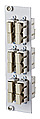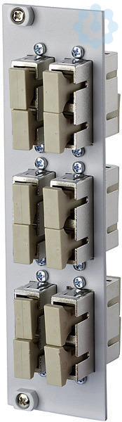 Frontplatte 3HE/7TE mit 6 SC-D Kupplungen, Führungshülse aus Keramik geschlitzt für Singlemode und Multimode Anwendungen, geeignet für den Einbau in OpDAT REGpro und OpDAT REG S, Stahlblech pulverbeschichtet, grau, Varianten: bestückt mit SC-D-Kupplungen jeweils metallisch oder blau (OS2), violett (OM4), aqua (OM3), beige (OM2) oder grün (OS2 APC)
