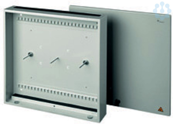 Anmerkungen: Gehäuse mit Klappdeckel, abschließbar, Zugentlastungsleisten im Gehäuse und Dichtungsleisten für ankommende und herausgeführte Kabel, Aufnahme für maximal 24 Spleißkassetten oder 8 Kassetten und 2 Verteilerplatten Abmessungen: 440 x 440 x 85 mm Bezeichnung: LWL-Kombi-Wandbox