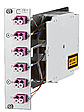 Kompaktmodul OpDAT CM 6xLC-D 3HE/TE, komplett bestückt mit 6 LC-D-Kupplungen und 12 LC-Pigtails, Pigtails mit Kompaktader ø 0,9 mm, Länge 2,0 m, 12 Farben, Pigtails in Standardspleißkassette mit Crimpspleißhalter eingelegt und abgesetzt, Pigtails gereinigt und in Kupplungen eingesteckt, Frontplatte aus silber eloxiertem Aluminium, Kupplungspositionen nummeriert, Trägerplatte aus Stahl, bestückt mit Spleißkassette und Überlängenkassette, jeweils mit Deckel, Befestigung im Baugruppenträger mit unverlierbaren Schrauben, Varianten: bestückt mit LC-D Kupplungen jeweils blau (OS2), grün (OS2 APC), lindgrün (OM5), violett (OM4) oder aqua (OM3)