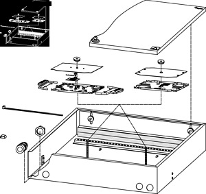 Anmerkungen: Gehäuse mit Klappdeckel, abschließbar, 4 Kabeleinführungsöffnungen für M25, Zugentlastungsleiste im Gehäuse zur Befestigung mit Kabelbindern, Dichtungsleiste für herausgeführte Kabel, mit Aufnahme für maximal 16 Spleißkassetten Abmessungen: 440 x 440 x 95 mm Bezeichnung: LWL-Wandspleißbox