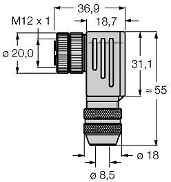 M12 x 1 Rundsteckverbinder, Konfektionierbare Kupplung, abgewinkelt, zum Einsatz in PROFIBUS-DP Applikationen, bis 12 MBit/s, Schirmung via Irisfelder, B-Kodierung, Metallgehäuse, 5-polig, Schraub-Klemmanschluss