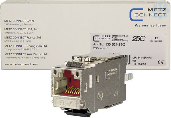 GHMT zertifiziert nach DTR-11801-9905 für 25GBASE-T im Channel-Link mit 30 m (50 m in Vorbereitung), vollständig abwärtskompatibel durch Einhaltung der Klasse E, A nach ISO/IEC 11801 Ed.2.2:2011-06 und DIN EN 50173-1:2011-09 (im Permanent Link bis 90m, im Channel Link bis 100m)RJ45 nach IEC 60603-7-1:2011, 2 Einbauformen: Modul und Keystone, Anschluss ohne Spezialwerkzeug, geringe Montage- und Anschlusszeit, Spezialwerkzeug-freie Migration von 10G-Systemen, Anschluss von Patch- und Installationskabel ist in den Größen AWG 26/7 - 22/7 und AWG 26/1 - 22/1 möglich, für 25GBit/s Ethernet (IEEE 802.3bq) und 10 GBit/s Ethernet (IEEE 802.3an), Remote Powering (PoE, PoE plus, UPoE und 4PPoE), HDBaseT, SAT-IP und AVoverIP geeignet, robustes, wieder verwendbares Modulgehäuse aus Zinkdruckguss, intelligentes Kabelmanagement in den Ladestücken - auch für stark verdrillte Leitungen geeignet - sowie einfacher Verbau in diverse Applikationen, Zugentlastung per rotem Rastclip direkt am Ladestück, 360°-Schirmanschluss, option