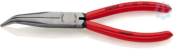 38 21 200 Mechanikerzange Hohe Biegefestigkeit der Zangenspitzen. 40° gewinkelte, flach-runde Backen. - Backendicke (am Gelenk) (T1): 9,5mm - Spitzenbreite (W4): 3,0mm - Spitzendicke (T2): 2,5mm - Backenlänge (L3): 73,0mm - Kopfbreite (W3): 17,5mm - Kopfwinkel: 40
