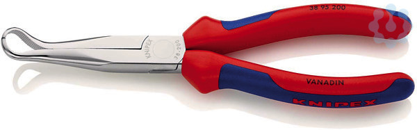 38 95 200 Mechanikerzange Hohe Biegefestigkeit der Zangenspitzen. 45° gewinkelte, flach-runde, lange Backen, auch zum Greifen von Zündkerzensteckern und Rundteilen (Zündkerzenstecker-Ziehzange). - Backendicke (am Gelenk) (T1): 9,5mm - Spitzendicke (T2): 2,5mm - Backenlänge (L3): 73,0mm - Kopfbreite (W3): 17,5mm - Kopfwinkel: 45