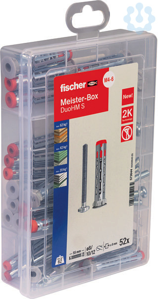 Der Hohlraumdübel DuoHM deckt mit nur einer Länge alle gängigen Baustoffdicken von 9,5-30mm ab. Durch die einzigartige Kombination aus Nylon und Metall, ermöglicht der DuoHM hohe Lasten und maximale Flexibilität in Plattenbaustoffen. Die Metallhülse klappt hinter dem Baustoff und presst sich an die Plattenrückseite, wohingegen sich der Nylon Grundkörper in der Platte verknotet. Die Montage des DuoHM erfolgt schnell und einfach mittels Akkuschrauber ohne zusätzliches Setzwerkzeug. Dies reduziert die Montagezeit um bis zu 50% im Vergleich zu herkömmlichen Plattendübel. Durch das metrische Innengewinde kann das Anbauteil mehrfach eingeschraubt und wieder gelöst werden. Neben der mitgelieferten Schraube, kann der DuoHM auch mit anderen metrischen Schrauben angewendet werden. Die Mitdrehsicherung aus Nylon schützt die Oberfläche des Baustoffs vor Beschädigungen. Aufgrund des schmalen Dübelrands ist der Dübel hinter dem Anbauteil nicht mehr sichtbar.