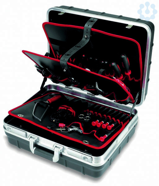 Profi-Hartschalenkoffer aus schlagfestem 3 mm-starkem ABS-Kunststoff mit Aluminiumrahmen, 3 Werkzeugtafeln mit vielen Einsteckfächern, separate Dokumentenaufbewahrung, Bodenschale mit individuell verstellbaren Facheinteilern für Kleinteile, Messgeräte, Werkzeug etc. , 2 abschließbare Schlösser komplett mit 31 Werkzeugen für Installation und Service in Datentechnik und Telekommunikation, speziell für Kupferverkabelung. Werkzeugkoffer-Bestückung: 1 x Telefonzange, gerade (10 0216), 1 x Telefonzange, gebogen (10 0238), 1 x Kombizange (10 0336), 1 x Seitenschneider 160 mm (10 0574), 1 x Abisolierzange Super 4 (10 0760), 1 x Elektronik-Seitenscheider 120 mm (10 0802), 1 x Elektronik-Spitzzange (10 0816), 1 x Pinzette (10 3016), 1 x Presszangensystem clickncrimp Datennetzwerktechnik (10 6009), 1 x Phasenprüfer (11 1280), 1 x Präzisions-Schlitz-Schraubendreher 2,0 x 0,4 (11 1864), 1 x Präzisions-Schlitz-Schraubendreher 2,5 x 0,4 (11 1865), 1 x Präzisions-Schlitz-Schraubendreher 4,0 x 0,8 (11 1870), 1 x Präzisions-Kr