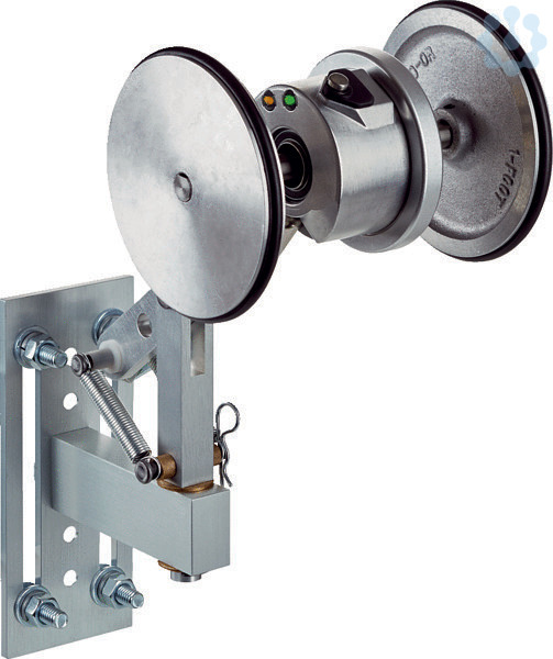 Messrad-Encoder, DUV60, Messradumfang: 12 ?, Messradoberfläche: O-Ring NBR70, Kommunikationsschnittstelle: 4,75 V ... 30 V, Inkremental, TTL, HTL, Versorgungsspannung: 4,75 V ... 30 V, Bereich der Impulse pro Umdrehung: 1 ... 1800, Ausgangsfunktion: Kanäle A und B, Anschlussart: Stecker, M12, 4-polig, universal, Ausführung Federarm: Federarm, Montage von unten mit Montagewinkel, Schaltfrequenzfilter: nein