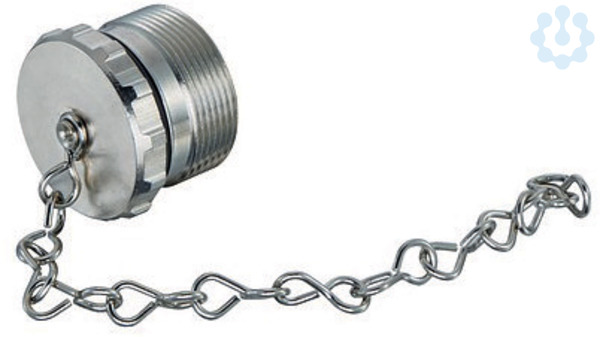 Schraubkappe, für Tüllengehäuse, mit Kette (100 mm), Baugröße: M23, Schraubverriegelung, Werkstoff Gehäuse: Kupferzinklegierung, vernickelt, Schutzart: IP67, im verriegelten Zustand, IP69 / IPX9K nach ISO 20653, im verriegelten Zustand