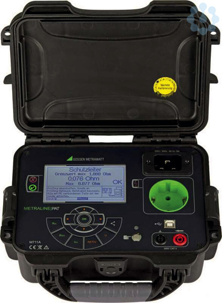 Prüfgerät zur Prüfung der Schutzmassnahmen an elektrischen Geräten gem. DIN VDE 0701-0702, deutsche Ausführung