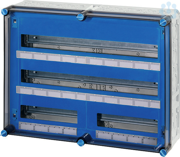 Gehäuse für den Bau von Energie-Schaltgerätekombinationen bis 630 A oder als Einzelgehäuse. Aus hochwertigem Polycarbonat schutzisoliert. Wanddurchführungen mit großen Öffnungen für die elektrische Verbindung der Gehäuse untereinander. Kabeleinführung an allen Gehäusewänden über metrische Vorprägungen oder Anbauflansche. Gehäuse zur Wandbefestigung auch über Außenlaschen oder mit Montageschienen. Automatengehäuse mit 80 Teilungseinheiten zum Einbau von Reiheneinbaugeräten nach DIN 43880. Mit PE- und N-Klemmen für Kupferleiter. N trennbar für unterschiedliche Potenziale. Mit Abdeckstreifen zum Verschließen von nicht benutzten Geräteausschnitten und Beschriftungsstreifen für die Stromkreiskennzeichnung. Transparenter Deckel, Deckelverschlüsse für Handbetätigung. Mit herausnehmbarem Traggerüst und Erdungsanschluss.