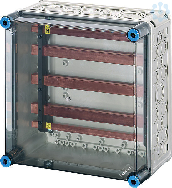 Gehäuse für den Bau von Energie-Schaltgerätekombinationen bis 630 A oder als Einzelgehäuse. Aus hochwertigem Polycarbonat schutzisoliert. Wanddurchführungen mit großen Öffnungen für die elektrische Verbindung der Gehäuse untereinander. Kabeleinführung an allen Gehäusewänden über metrische Vorprägungen oder Anbauflansche. Gehäuse zur Wandbefestigung auch über Außenlaschen oder mit Montageschienen. Gehäuse mit Sammelschienen, ohne Gerät, ohne Klemmen. Deckelverschlüsse für Werkzeugbetätigung.