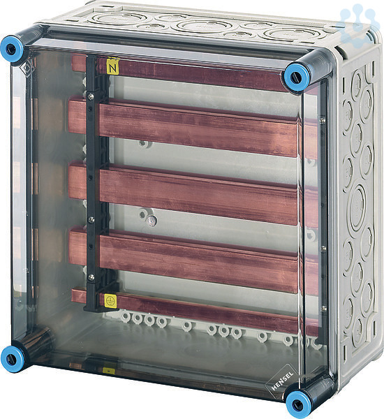 Gehäuse für den Bau von Energie-Schaltgerätekombinationen bis 630 A oder als Einzelgehäuse. Aus hochwertigem Polycarbonat schutzisoliert. Wanddurchführungen mit großen Öffnungen für die elektrische Verbindung der Gehäuse untereinander. Kabeleinführung an allen Gehäusewänden über metrische Vorprägungen oder Anbauflansche. Gehäuse zur Wandbefestigung auch über Außenlaschen oder mit Montageschienen. Gehäuse mit Sammelschienen, ohne Gerät, ohne Klemmen. Deckelverschlüsse für Werkzeugbetätigung.