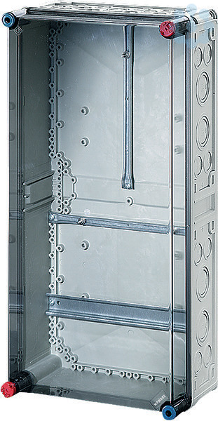 Gehäuse für den Bau von Energie-Schaltgerätekombinationen bis 630 A oder als Einzelgehäuse. Aus hochwertigem Polycarbonat schutzisoliert. Wanddurchführungen mit großen Öffnungen für die elektrische Verbindung der Gehäuse untereinander. Kabeleinführung an allen Gehäusewänden über metrische Vorprägungen oder Anbauflansche. Gehäuse zur Wandbefestigung auch über Außenlaschen oder mit Montageschienen. Zählergehäuse für Zähler mit Dreipunktbefestigung, inklusive Zählerbefestigung und Tragschiene. Max. Einbautiefe 146 mm. Deckelverschlüsse für Werkzeugbetätigung, zweifach plombierbar. Einsatz im ungemessenen Bereich nach Absprache mit örtlichem Netzbetreiber.