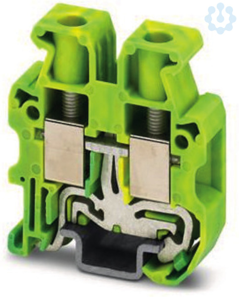 Mini-Schutzleiterklemme, Anzahl der Anschlüsse: 2, Polzahl: 1, Anschlussart: Schraubanschluss, Bemessungsquerschnitt: 6 mm², Querschnitt: 0,2 mm² - 10 mm², Montageart: NS 15, Farbe: grün-gelb