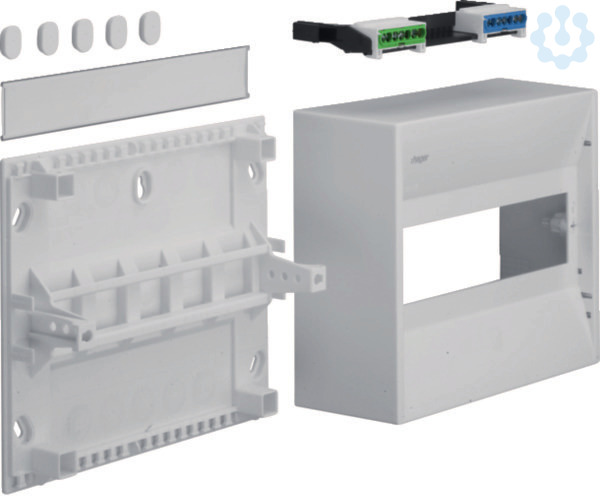 Miniverteiler, gamma, 10 Modul, IP30, 1xPE, 1xN. Miniverteiler als Kleinstverteiler aus Kunststoff, nach Maßnorm DIN 43880 und als Berührungsschutzabdeckung nach BGV A2. Zum Einbau von REG-Geräten. Zur Aufputz/Aufbau Montage mit 46 mm Geräteschlitz, serienmäßig plombierbar.