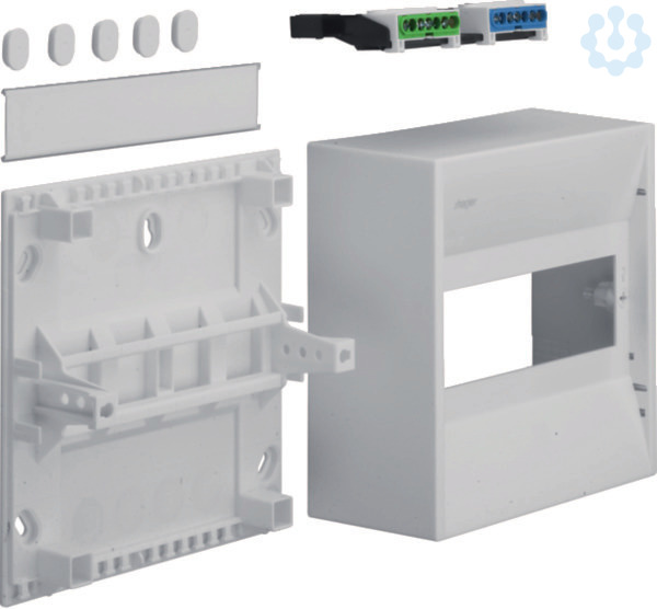 Miniverteiler, gamma, 8 Modul, IP30, 1xPE, 1xN. Miniverteiler als Kleinstverteiler aus Kunststoff, nach Maßnorm DIN 43880 und als Berührungsschutzabdeckung nach BGV A2. Zum Einbau von REG-Geräten. Zur Aufputz/Aufbau Montage mit 46 mm Geräteschlitz, serienmäßig plombierbar.