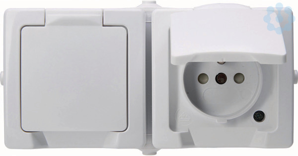 Aufputz-Feuchtraum 2-fach Mittenschutzkontakt-Steckdose im Design NAUTIC und der Farbe arktisweiß mit erhöhtem Berührungsschutz in waagrechter Ausführung. Nennspannung beträgt 250V~ und Nennstrom 16A.Schutzart IP 44.