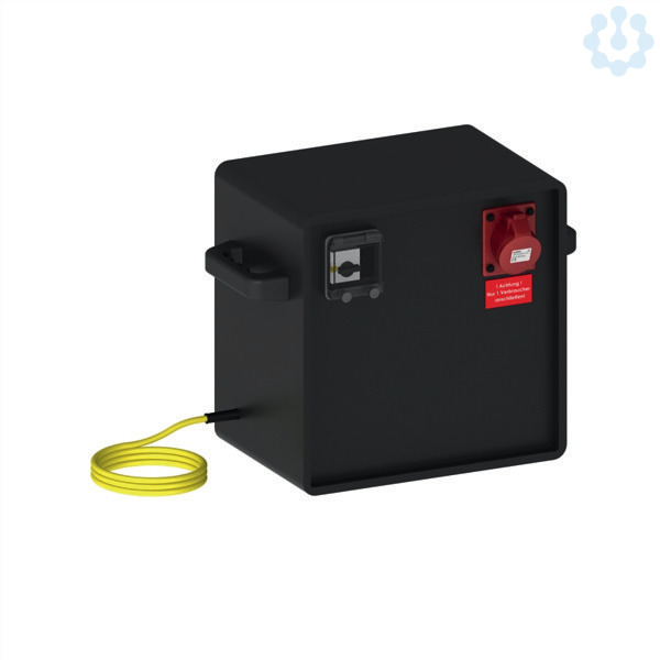 Sekundärspannung: 3x400 V, Schaltgruppe: Dyn 5, * primär abgesichert über einen Motorschutzschalter 4 - 6 A/3 pol., eingestellt auf 5,8 A, Ausgang: 1 CEE-Einbausteckdose 5x16 A/400 V, (ohne Erdkontakt), Ausführung: - K2 Ausführung, - schutzisoliert und spritzwassergeschützt, - Transformator nach VDE 0570, - der Schutzschalter ist von außen zugänglich und liegt geschützt hinter einem Sichtklappenfenster