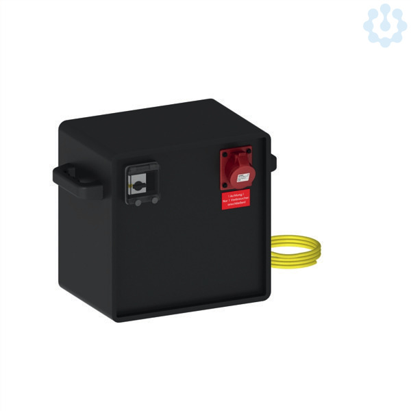 Mobiler Trenntransformator im ELSPRO-Vollgummigehäuse der Baureihe NÜRNBERG, Eingang: 3 m Leitung INDUSTRIEFLEX 07 mit CEE-Stecker 5x16 A/400 V, Einbauten: 1 Drehstrom-Trenntransformator, Nennleistung: 4500 VA, Primärspannung: 3x400 V, Sekundärspannung: 3x400 V, Schaltgruppe: Dyn 5 * primär abgesichert über einen Motorschutzschalter 6 - 10 A/3 pol. eingestellt auf 6,5 A, Ausgang: 1 CEE-Einbausteckdose 5x16 A/400 V, Ausführung: - K2 Ausführung, - schutzisoliert und spritzwassergeschützt, - der Schutzschalter ist von außen zugänglich und liegt geschützt hinter einem Sichtklappenfenster