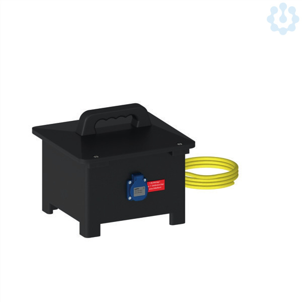 Mobiler Trenntransformator im ELSPRO-Vollgummigehäuse, der Baureihe FREIBURG, Eingang: 3 m Leitung INDUSTRIEFLEX 07 mit Konturenstecker, Einbauten: 1 Trenntransformator 500 VA, 230 V/230 V, * primär abgesichert über einen thermischen Überstromschutzschalter, Ausgang: 1 Schutzkontaktsteckdose, (ohne Erdkontakt), Ausführung: - K2 Ausführung, - schutzisoliert und spritzwassergeschützt, - Transformator nach VDE 0570, - der aufklappbare Vollgummi-Deckel wird mit unverlierbaren M6 V2A-Schrauben verschlossen, - Scharnier mit massiver V2A-Achse, - robuste Standfüße, - 30 mm Bodenfreiheit