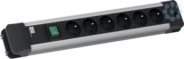 Connectus Steckdosenleiste 6xUTE/Frankreich Steckdosen sw Kunststoffprofil silber, schwarze Endkappen, mit erhöhtem Berührungsschutz mit 2-poligem Wippschalter 2m H05VV-F3G1,50mm², schwarz