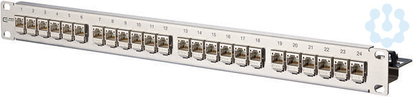 19 Zoll 1HE Edelstahl Modulträger mit 24 Einzelmodulen C6, Amodul 180°, GHMT Cat.6, A re-embedded PVP zertifiziert, Cat.6, A Komponentenprüfung nach ISO/IEC 11801 Ed.2.2:2011-06, DIN EN 50173-1:2011-09, TIA/EIA-568-C.2 (2009-08) und IEC 60603-7-51 Ed.1 (12/2008), GHMT zertifiziert, Einhaltung der Klasse E, A bis 500 MHz nach ISO/IEC 11801 Ed.2.2:2011-06, DIN EN 50173-1:2011-09, getestet: Komponente bis 600 MHz, Link bis 800 MHz, für 10GBit Ethernet (IEEE 802.3an), Remote Powering (PoE, PoE plus, UPoE und 4PPoE) und HDBaseT geeignet, Anschluss von Datenleitungen AWG 26/1 - 22/1 (eindrähtig) und AWG 26/7 bis 22/7 (mehrdrähtig) an IDC-Schneidklemmen, Spezialwerkzeug-freie Migration auf 25G-Systeme, Zugentlastung per Rastclip direkt am Ladestück des C6, Amodul, zusätzliche Zugentlastung am Patchfeld mittels Kabelbinder möglich, Erdungsbolzen M6 x 10 mit Mutter und Zahnscheibe, inkl. 30 cm Erdungskabel, alle vollgeschirmten Module sind über den Edelstahl-Modulträger verbunden