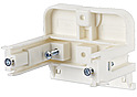 Montagehalter für den montagefreundlichen und Platz sparenden Einbau der Anschlussdosen in Brüstungskanälen zur Einhaltung der Biegeradien, wie sie bei Kupfer- und LWL-Datenkabeln gefordert werden. Zur Trennung gegenüber netzspannungsführenden Teilen sind die Halter auch mit einsteckbarer Trennschale lieferbar., T-Nut-Befestigung, waagerecht passend zu Kanälen von Tehalit, OBO/Bettermann, ASYCO und Alusor, Varianten: 50 mm weiß, 50 mm weiß mit Trennschale, 55 mm schwarz, 55 mm schwarz mit Trennschale