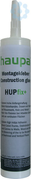 Montagekleber HUPfix+Anwendung HUPFix+: Verklebung von Metallen, Holz und Kunststoffen mit- und untereinander im Elektrohandwerk, Bausektor, Möbelindustrie, Containerbau, Blechverarbeitung, Apparatebau, Klimatechnik, Yacht/Bootsbau, Karosserie, Fahrzeugbau und Fensterbau. Einsetzbar in Bereichen, wo Silikon nicht zu verarbeiten ist. Ein Klebstoff, der eine noch nie dagewesene Anfangshaftung aufweist. Mit HUPfix+ ist es möglich, auch schwere Teile wie Kabel, Steine, Holz, Fliesen und Metalle an Decken und Wänden zu verkleben, wo herkömmliche Klebstoffe nachgeben und abrutschen. Eigenschaften: Die zu verklebenden Teile müssen sauber, öl- und fettfrei sein. HUPfix+ einseitig auftragen und Teile positionieren und fest anpressen. Die Haftung erfolgt sofort. Hautbildung nach 10 bis 15 Minuten. Durchhärtegeschwindigkeit 3 mm/24 Stunden. Temperaturbeständigkeit: -40 bis +100°C (kurzfristig 2-3 Std. bis 130°C). Verarbeitungstemperatur: + 5 bis + 40°C.? Extrem hohe Anfangshaftung ? Klebt Kabelkanäle, Dosen und Kabel au