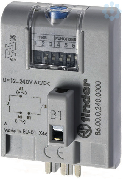 Multifunktionszeitmodul für Fassung S 90.02/.03, 92.03, Funktionen: Ansprechverzögerung, Einschaltwischer, Blinker-symmetrisch (impulsbeginnend), Rückfallverzögerung, Ansprech-/Rückfallverzögerung, Einschaltwischer, Impulsformer, Ausschaltwischer, Einschalt-/Ausschaltwischer impulsbeginnend/pausebeginnend, Zeitbereich: 0,05 s - 100 h, Versorgungsspannung: 12-240 V DC/AC (50/60 Hz), Relaisschutzart: IP 20, Spezialausführung für Bahn-Anwendungen.