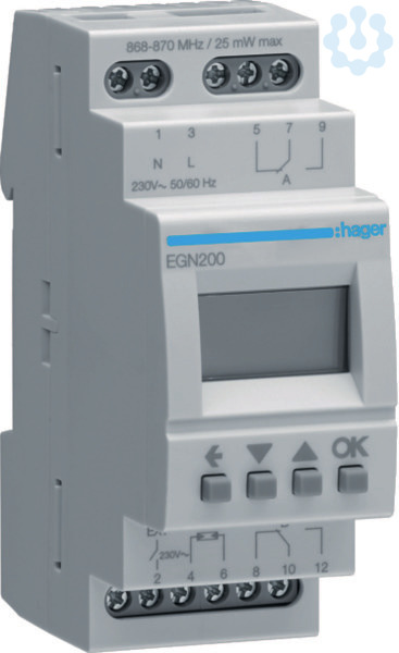 Digitale Multifunktions-Zeitschaltuhr mit Bluetooth, 2-Kanal. Digitale Multifunktions-Zeitschaltuhr 2-Kanal mit beleuchtbarem Display, integrierter Bluetooth Funktion und App Programmierung. Zur zeit-, helligkeits- und ortsabhängigen Steuerung mit Wechselkontakten für die Last Ein/Aus oder Dämmerungsschalterfunktion und Taster/Schalter für Ausnahmeaufruf. Nutzbar als Tages-, Wochen,- Jahres- und Astro-Uhr zusätzlich mit integrierter Dämmerungsschalterfunktion. Ausnahmensteuerung durch verdrahteten externen Schalter/Taster oder KNX Funkschalter/-taster quicklink. Programmierung am Gerät oder über App: Uhrzeit und Datum (werkseitig eingestellt), automatische Sommer-/Winterzeitumstellung, Feiertags- und Schulferienzeiten ortsabhängig auswählbar, Sperrung des Zugriffes über App oder Tastenkombination, temporäre und permanente Ausnahmesteuerung Ein/Aus/Impuls. Programme sind in der App erstellbar, von bereits benutzten Vorlagen übernehmbar oder Ausnahmen aktivierbar. Zur Weitergabe und externen Speicherung des Pro