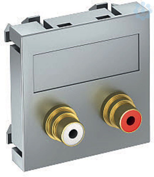 Multimediaträger mit zwei Cinch Anschlussbuchsen für Audio R / L, Kabelauslass gerade, mit Beschriftungsfeld, zwei Cinch Buchsen (RCA) mit Lötanschluss, Farbkodierung rot / weiß. Trägerplatte mit Rastbefestigung, geeignet für den waagerechten und senkrechten Einbau in die Systemumgebung.