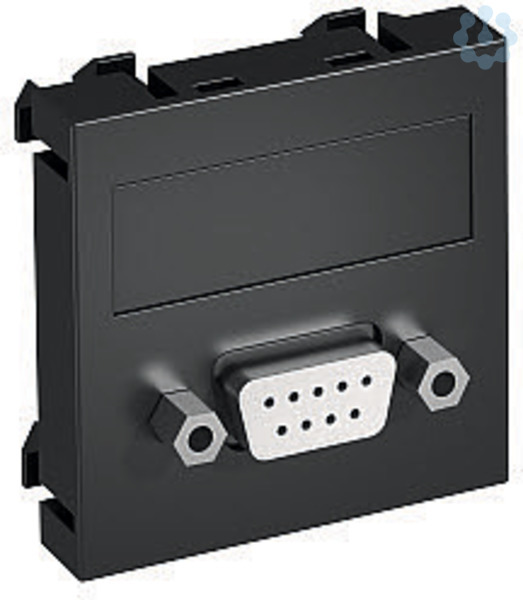 Multimediaträger mit einer D-Sub9 Anschlussbuchse, Kabelauslass gerade, mit Beschriftungsfeld, D-Sub9 Buchse (RS232) mit Schraubanschluss. Trägerplatte mit Rastbefestigung, geeignet für den waagerechten und senkrechten Einbau in die Systemumgebung.