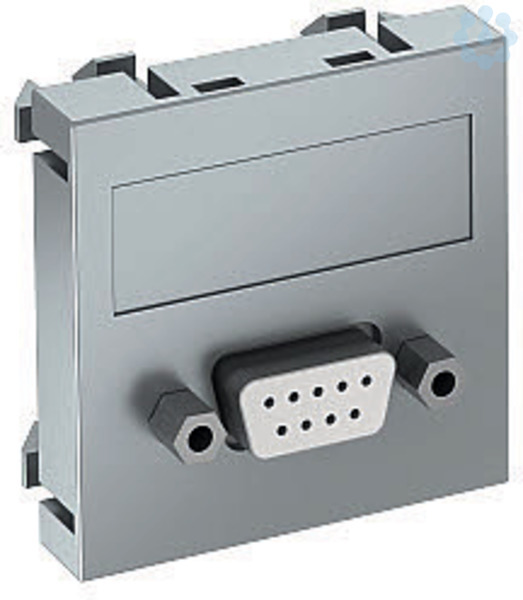 Multimediaträger mit einer D-Sub9 Anschlussbuchse, Kabelauslass gerade, mit Beschriftungsfeld, D-Sub9 Buchse (RS232) mit Schraubanschluss. Trägerplatte mit Rastbefestigung, geeignet für den waagerechten und senkrechten Einbau in die Systemumgebung.
