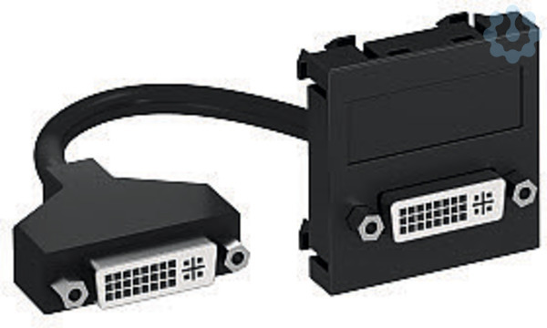 Multimediaträger mit einer DVI-I Anschlussbuchse, Kabelauslass gerade, mit Beschriftungsfeld, kurzes DVI-I Anschlusskabel in Ausführung Buchse-Buchse. Träger mit Rastbefestigung, geeignet für den waagerechten und senkrechten Einbau in die Systemumgebung.