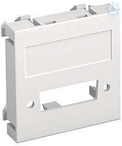 Multimediaträger für einen DVI Steckverbinder, Kabelauslass gerade, mit Beschriftungsfeld, ohne Steckverbinder. Trägerplatte mit Rastbefestigung, geeignet für den waagerechten und senkrechten Einbau in die Systemumgebung.