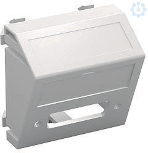 Multimediaträger für einen DVI Steckverbinder, Kabelauslass schräg, mit Beschriftungsfeld, ohne Steckverbinder. Trägerplatte mit Rastbefestigung, geeignet für den waagerechten und senkrechten Einbau in die Systemumgebung.