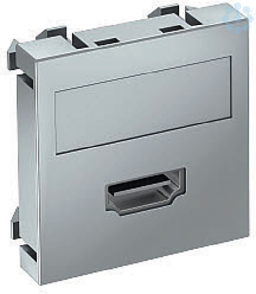 Multimediaträger mit einer HDMI Anschlussbuchse, Kabelauslass gerade, mit Beschriftungsfeld, HDMI Buchse mit Schraubanschluss. Trägerplatte mit Rastbefestigung, geeignet für den waagerechten und senkrechten Einbau in die Systemumgebung.