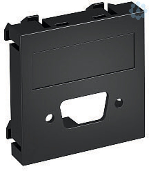Multimediaträger für einen VGA / D-Sub9 Steckverbinder, Kabelauslass gerade, mit Beschriftungsfeld, ohne Steckverbinder. Trägerplatte mit Rastbefestigung, geeignet für den waagerechten und senkrechten Einbau in die Systemumgebung.